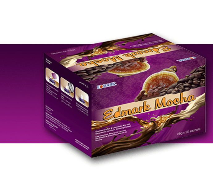 Edmark Mocha is a high-quality gourmet coffee, combining a rich chocolate flavor with a strong, creamy body. This coffee is part of Edmark's special coffee collection, enriched with a unique ingredient called Ganoderma Linctum.